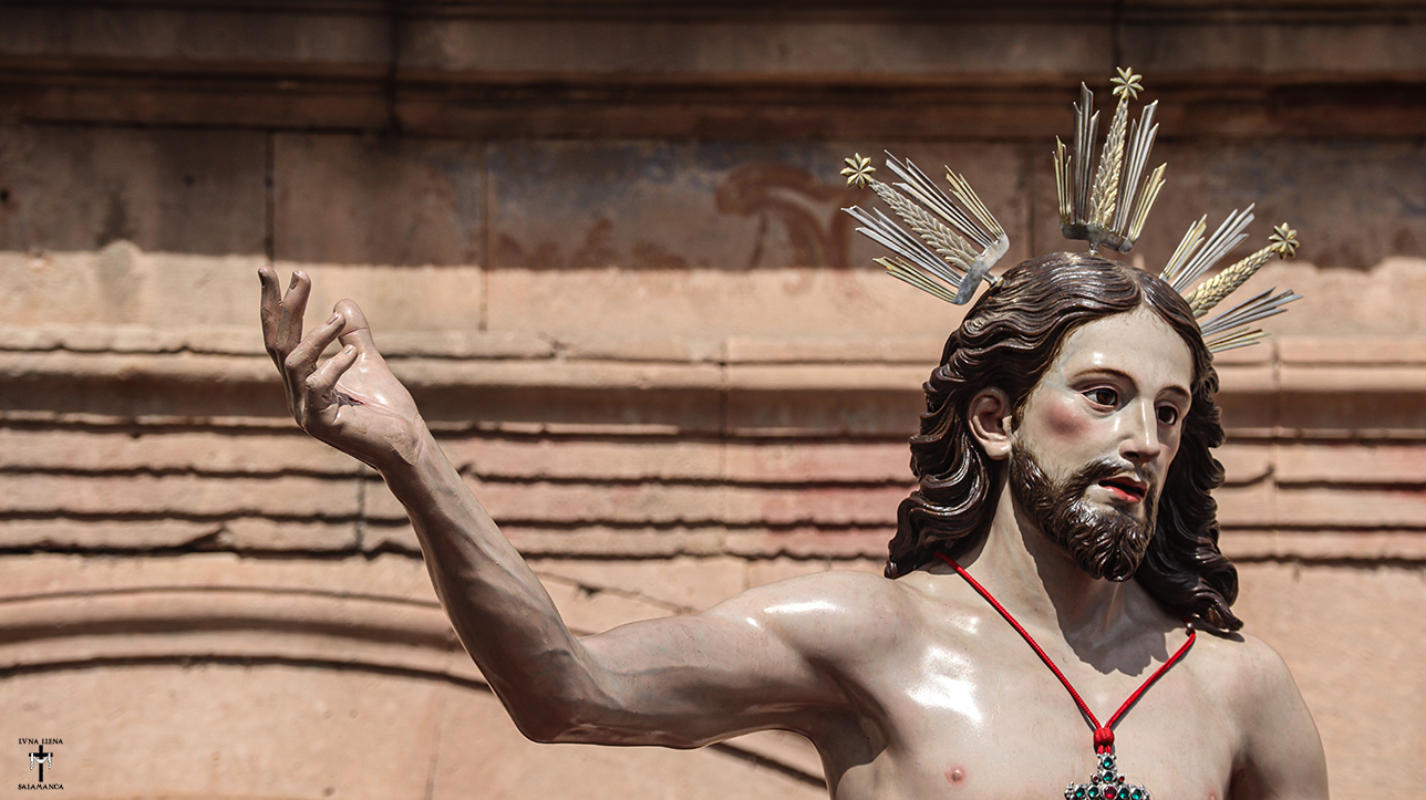 La imagen triunfante de Jesús Resucitado entrando en la iglesia de la Vera Cruz cierra la Semana Santa la mañana del Domingo de Resurrección, tras unos días intensos.