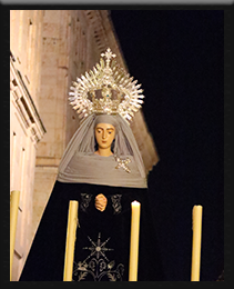 Cuando comenzó a salir, allá a mediados de los 80, salía con música y pasaba por la Plaza Mayor. Sin embargo la procesión ha ido ganando austeridad y sentimiento. No lleva acompañamiento musical alguno y cuando los nazarenos que alumbran los pasos del Cristo y el de Nuestra Señora de la Amargura caminan entre los espectadores, un respetuoso silencio envuelve ese instante mágico. Solo el arrastre de las cadenas que el penitente que carga con una cruz lleva a modo de grilletes atadas a su pies, rompe la quietud de la noche.