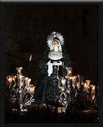 En la Plaza Mayor, cuando la procesión alcanza su punto culminante, la imagen, magistralmente llevada por los hermanos, parece como si flotara entre las personas que hacen pasillo contemplando la marcha penitencial.