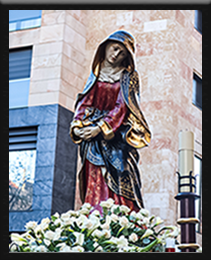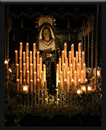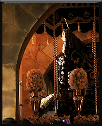 Quizás la petalada inicial, cuando el palio de la Virgen franquea la Puerta del Obispo de la Catedral Nueva, de donde sale, sea la única concesión a lo andaluz, continuando con un cortejo austero cuyo momento cumbre se centra en la Plaza Mayor, donde se canta el Ave María de Frank Schubert entre el silencio del público asistente y la oscuridad que se logra con el apagado de las luces para dejar la imagen de la Soledad, alumbrada con la propia candelaria del paso.