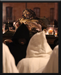 El Cristo de la Liberación, tras su traslado la noche del Viernes de Dolores, inicia su marcha penitencial saliendo del Colegio del Arzobispo Fonseca. Es una marcha fúnebre, que acompaña un Yacente de trágica expresión. Los vestidos de luto serrano y los cánticos gregorianos envuelven la fría madrugada en las estrechas calles del Barrio Antiguo en un desfile intimista y silencioso, de corte austero, muy castellano que pese a lo intempestivo de la hora, es cada vez más frecuentado por el público.