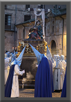 La imagen de la Virgen de los Dolores desfila en dos ocasiones durante la Semana Santa de Salamanca. Primeramente la tarde del Viernes de Dolores, en la procesión llamada Vía Matris y una vez más la tarde del Viernes Santo, junto con otros pasos en la procesión del Santo Entierro que organiza la Cofradía de la Vera Cruz.
