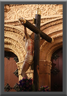La imagen del Cristo de la Buena Muerte es un crucificado de autoría desconocida que data del siglo XVII. Representa un Cristo ya muerto con aspecto sereno y el cuerpo relajado. Sobre la cabeza reposa una corona de espinas exenta sobre una cabellera tallada al igual que una poblada barba. El estudio anatómico de la imagen no es excesivamente minucioso, si bien es una de las figuras de crucificado con más sangre representada ya que abundantes regueros se aprecian por todo su cuerpo, especialmente el que mana de la herida del costado infligida por Longinos. El paño de pureza de muy simple, solo el anudado en el costado derecho con el lienzo sobrante cayendo ofrece cierto virtuosismo. El madero sobre el que se asienta la figura es en la actualidad de tipo arbóreo con cantoneras metálicas de color dorado.