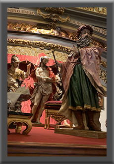 El grupo escultórico "Ecce Homo", también conocido como la Caña, está compuesto por cuatro imágenes que representan la escena en la que Jesús es presentado ante el pueblo después de haber sido flagelado, vestido con la clámide púrpura y colocado entre sus brazos una caña a modo de cetro real a modo de burla. Pilato muestra al pueblo a Jesús mientras los dos sayones, con rostro amenazante, le custodian. La autoría de las imágenes se atribuye a Alejandro Carnicero, aunque no hay documentación fidedigna que acredite este extremo, realizadas para la cofradía a mediados del siglo XVII. Cabe señalar que el paso recibe la popular denominación de "bocarratonera" debido a la boca siniestra de uno de los sayones que acompañan a Jesús y que se asemeja a una guarida de ratones.
